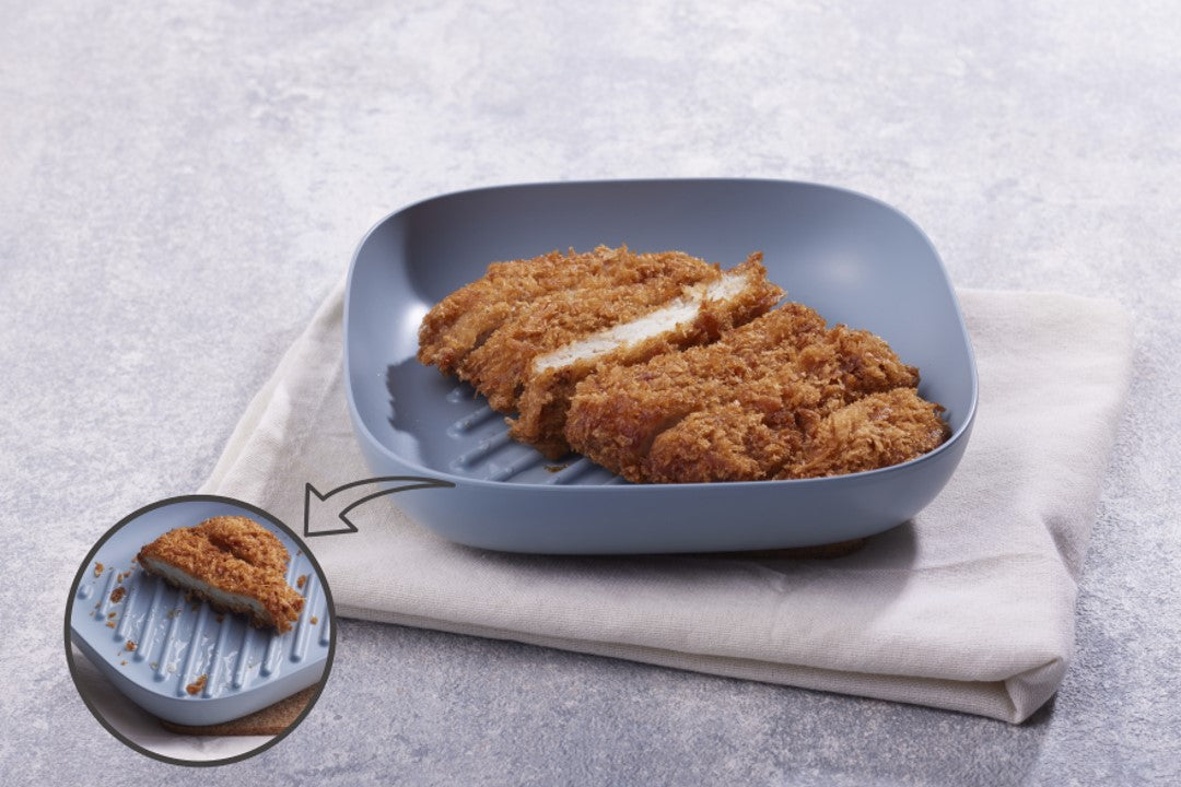 CoYaKi plateは波型プレートになっており、余分な油が溝に落ちるので、揚げ物をCoYaKi plateに載せて加熱すれば、揚げ物がべちゃっとなりにくく、ヘルシーにお召し上がりいただけます。